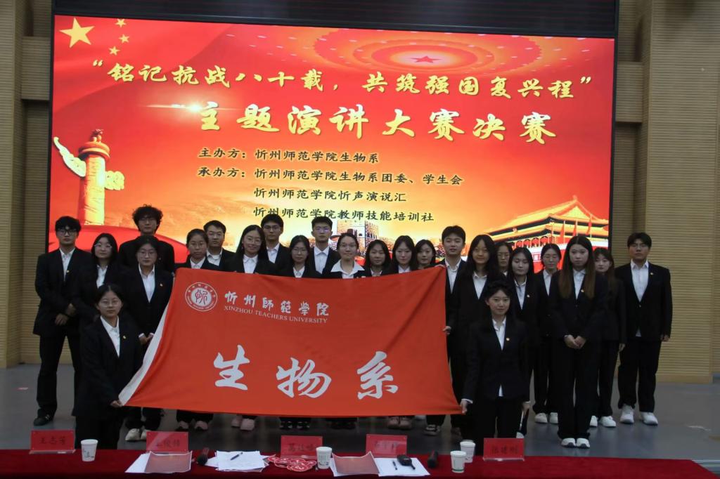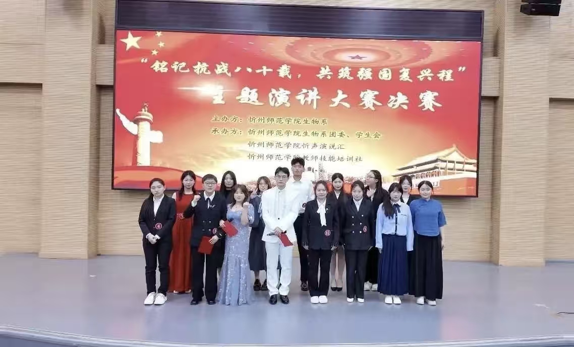 为深切缅怀抗战历史,传承红色基因,进一步激发青年学子的爱国热情与时代担当,由生物系团委、生物系学生会、忻声演说汇与教师技能培训社联合举办的“铭记抗战八十载,共筑强国复兴程”主题演讲大赛决赛,于10月24日在美术楼报告厅圆满落幕。