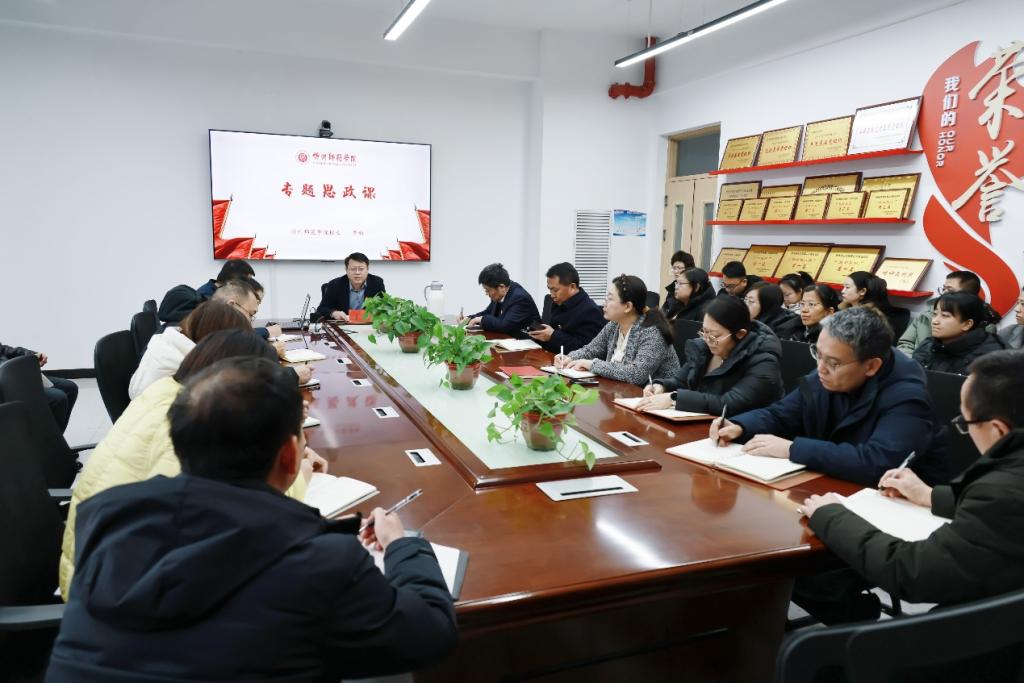 12月16日,校长李新聚焦“科技创新与服务地方”主题,为师生代表讲授了一场思想深刻、内容丰富的专题思政课。他勉励广大师生,要深入学习领会习近平总书记关于高等教育和科技创新的重要论述,感悟真理力量,勇担时代使命,树雄心、立壮志,在推动学校“硕单建设”等重大工作和服务区域高质量发展的生动实践中展现担当、贡献力量。