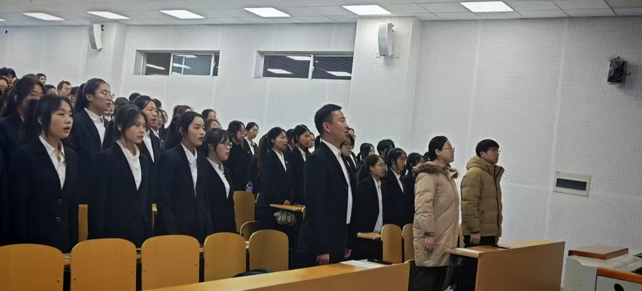 仪式在雄壮的国歌声中拉开序幕。全体师生肃立齐唱,歌声铿锵。随后,史晓晶老师上台致辞,向新团员表示热烈祝贺。